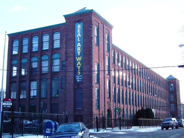My Hartford, CT studio is in an old factory building next to the railroad track. I can hear the whistles of north- and southbound Amtrak trains and the passing of long freight trains. Tenants in the building include several artists, graphic designers, photographers, non-profit organizations, small businesses, and one church. In the back is Real Art Ways, an avant-garde arts center with large gallery spaces, café, and a movie theater.