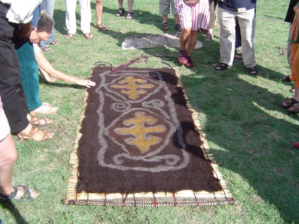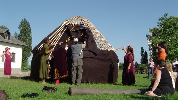 The festival featured felt art. A yurt village erected on the grounds of Buda Castle was the site of exhibits and ongoing demonstrations of felt-making and related crafts. |