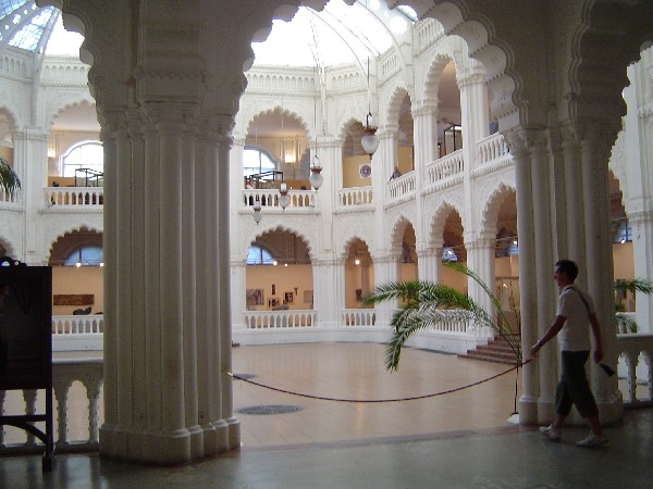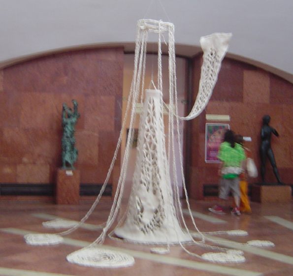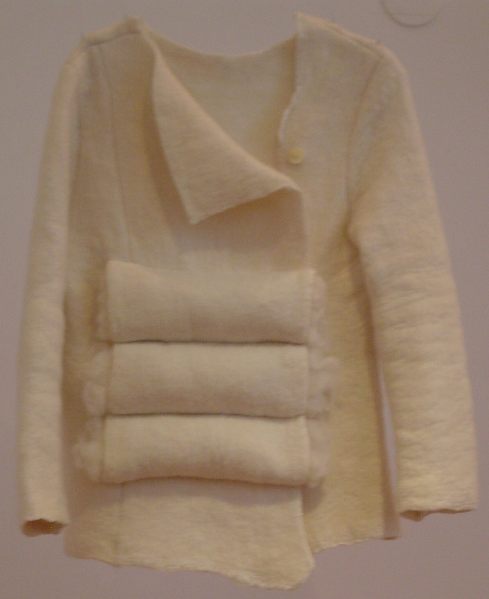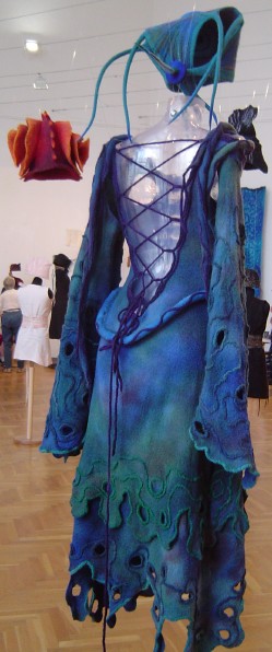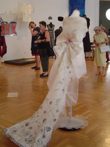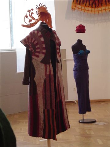 "Warm in Winter; Cool in Summer," an international exhibition of wearables was installed in the magnificent Institute of Applied Arts in Pest. With its green and gold tiled roof and bright white Moorish interior the building itself was worth the trip! |