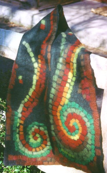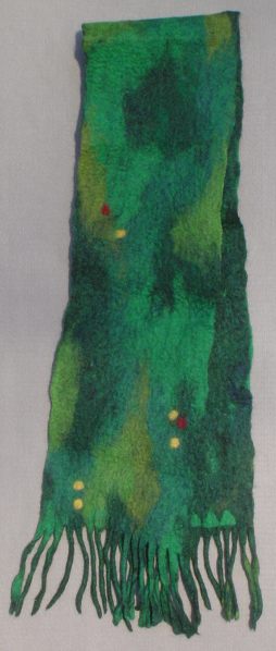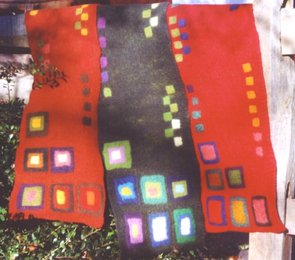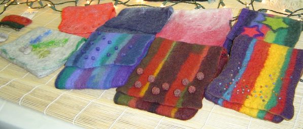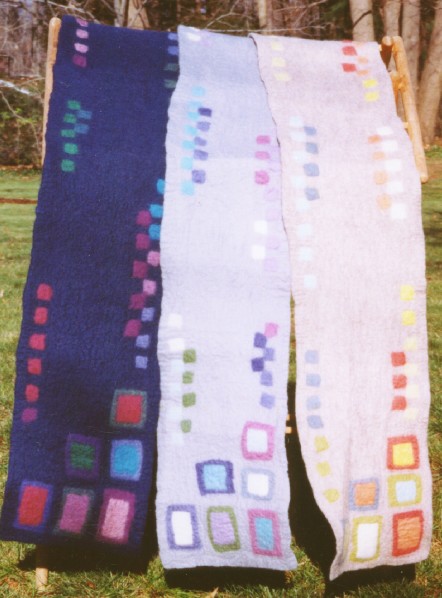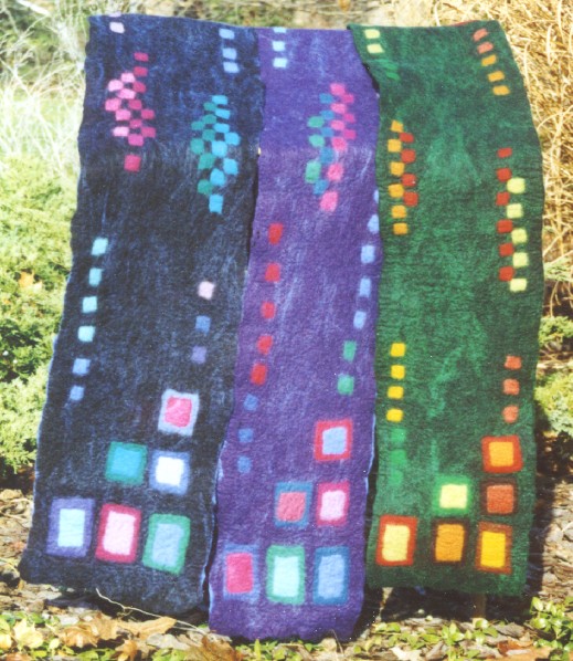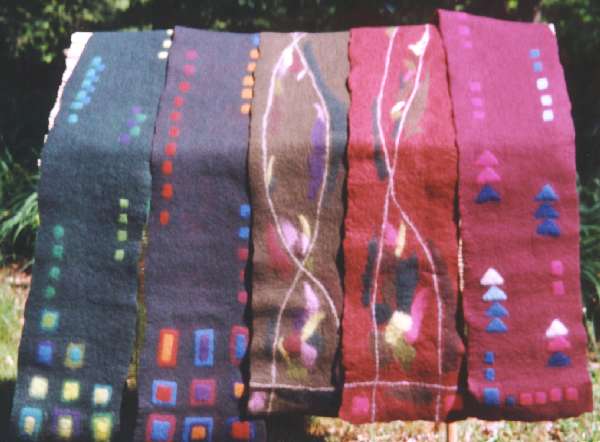 The scarves are all wet-felted, most with inlaid pieces, some beaded. | |||||||||